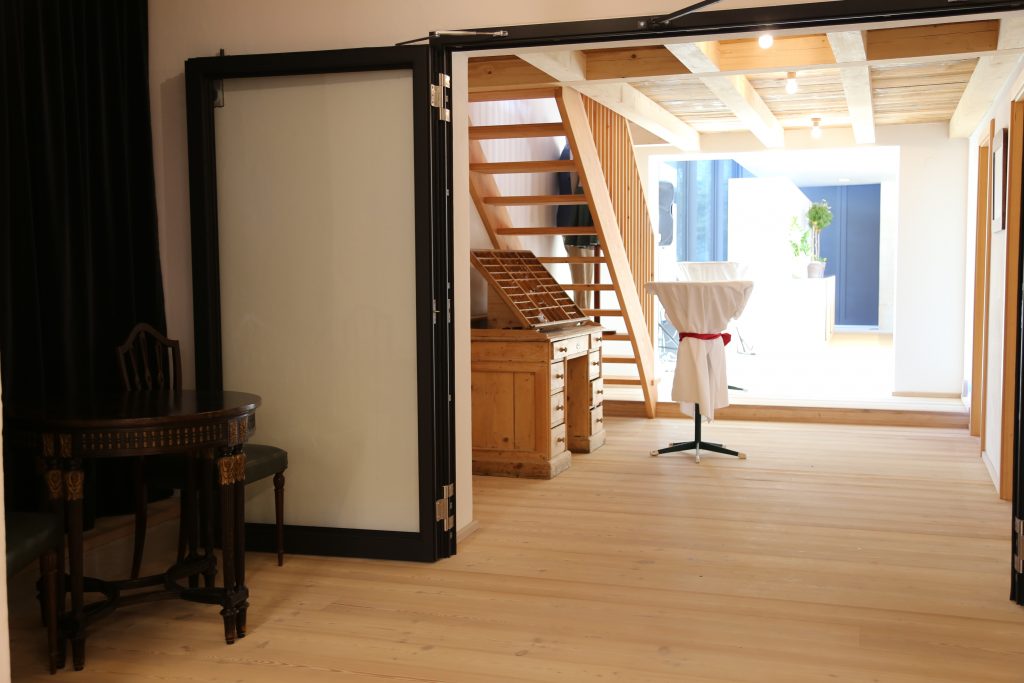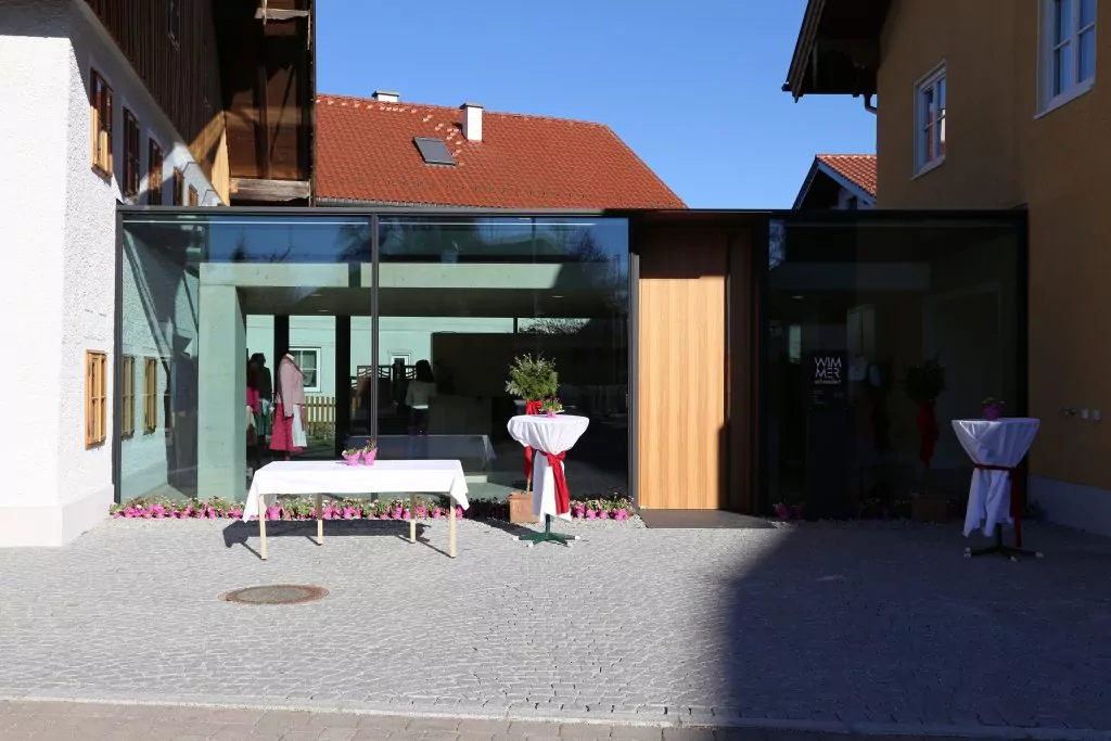 Und das ist daraus geworden: Das alte Bauernhaus wurde renoviert und stilvoll mit dem bisherigen Geschäftsräumen verbunden. Die Verbindung ist gleichzeitig der neue Geschäftseingang.