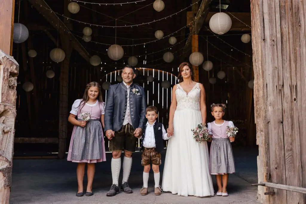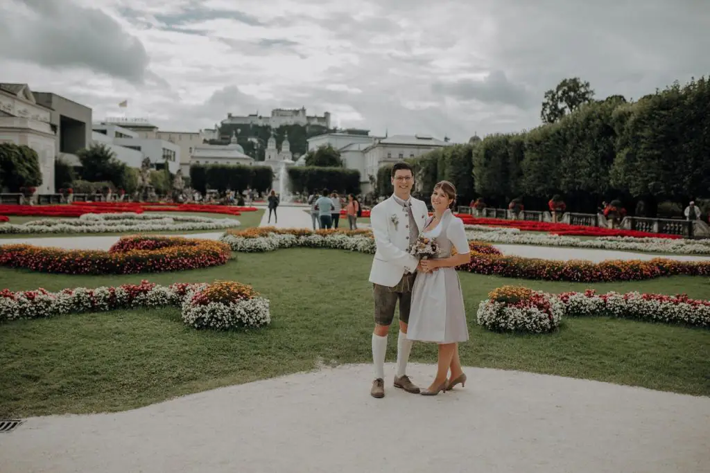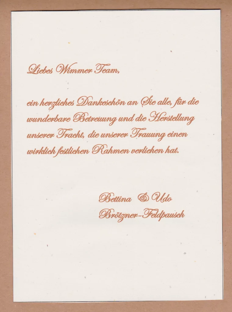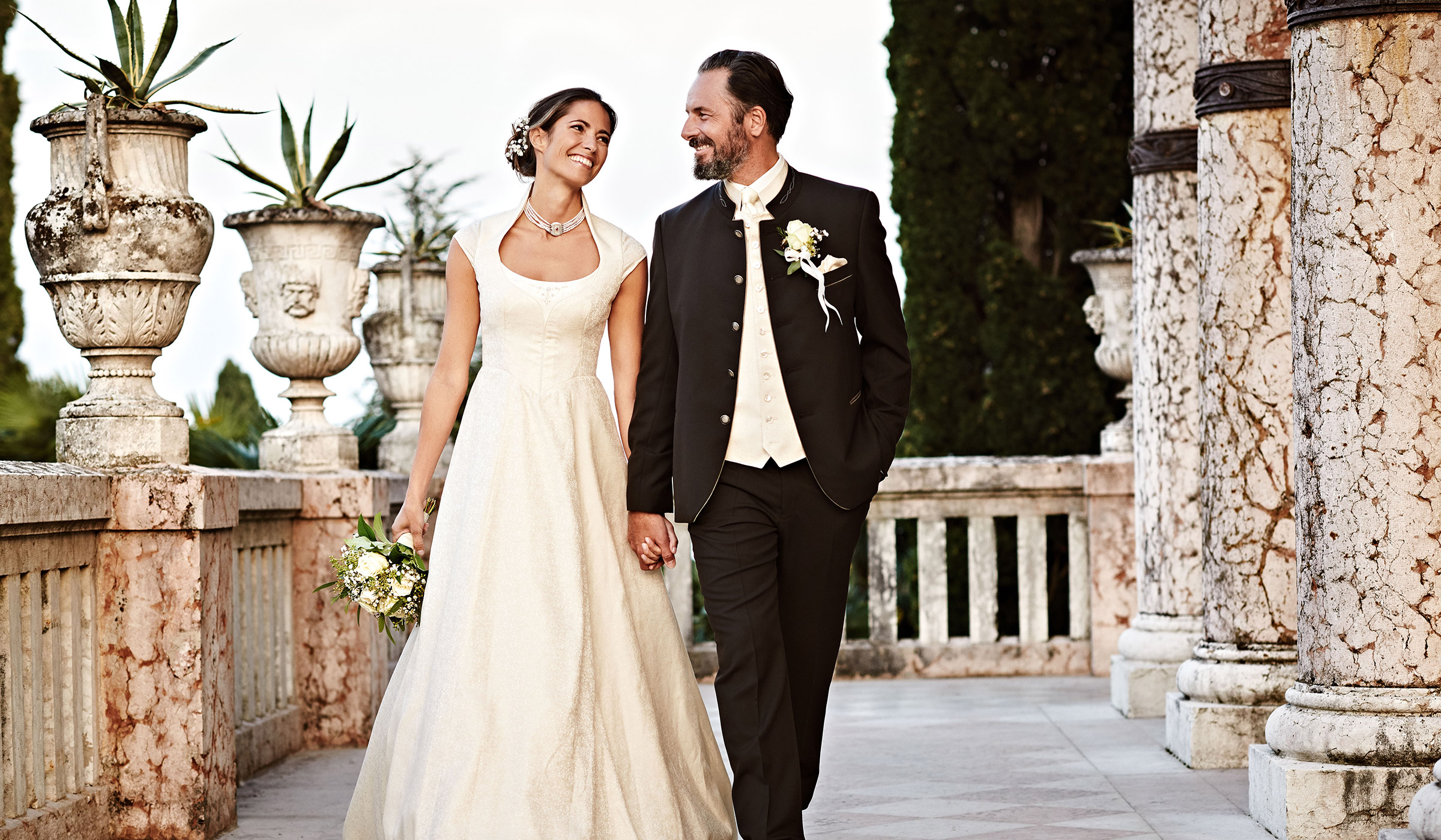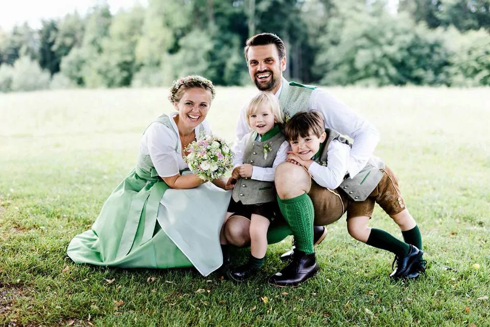 Weil wir als erfahrene Maßschneiderei und Trachtendesigner und jedes Stück eigens für dich anfertigen, können wir Braut und Bräutigam besonders gut aufeinander abstimmen. Die Schürze oder Schleppe passt zum Schleier genauso, wie der Bräutigam zur Braut. Ein echtes Traumpaar – der Partnerlook fürs Leben. Oft passen wir auch die enge Verwandtschaft oder gesamte Hochzeitsgesellschaft der Trachtenhochzeit an und schneidern unvergessliches Gesamterlebnis.